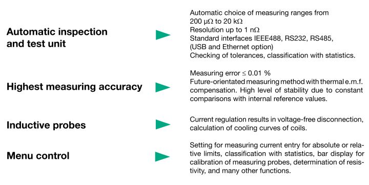 . Automatic measurement range 200 µΩ to 20 kΩ