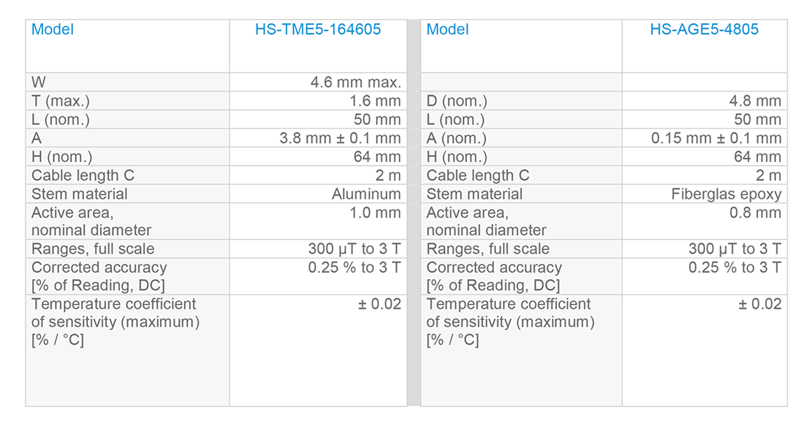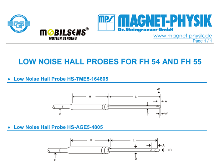 Low Noise 0.01uT Hall Probes for FH54 and FH55