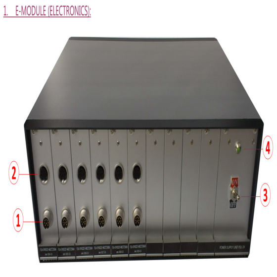 The Multi-Probe Magnetic Field Transducer (hereinafter MPMFT) of type MPA chassis with 6 x F1A-0YK02D-M02T25KM is a high accuracy magnetic flux density-to-analogue voltage measurement station that integrates 6 (six) SENIS F1A Single-Axis Hall probes 0YK02D and the corresponding signal processing Electronic modules (magnetic field transducers) M02T25KM. This measurement device can be used as a compact multi-point monitoring system of complex electromagnetic machines or processes, providing a high-level and temperature compensated output signal for the transverse (Y) component of the measured magnetic flux density of the applied Hall Probes.